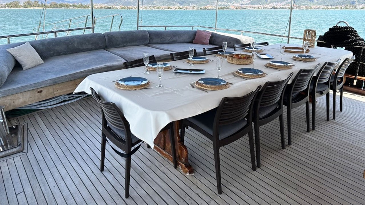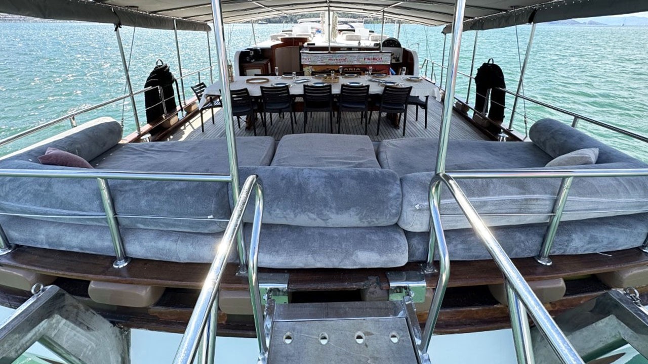 Гулет Aria — традиционный гулет длиной 27 м, полностью реновирован в 2023 году. Стиль, комфорт и элегантность. На борту шесть кают (одна мастер, четыре дабл и одна твин), все с кондиционером, отдельными санузлами и душевыми; размещение — до 12 гостей. Команда из четырёх человек обеспечивает внимательный сервис.