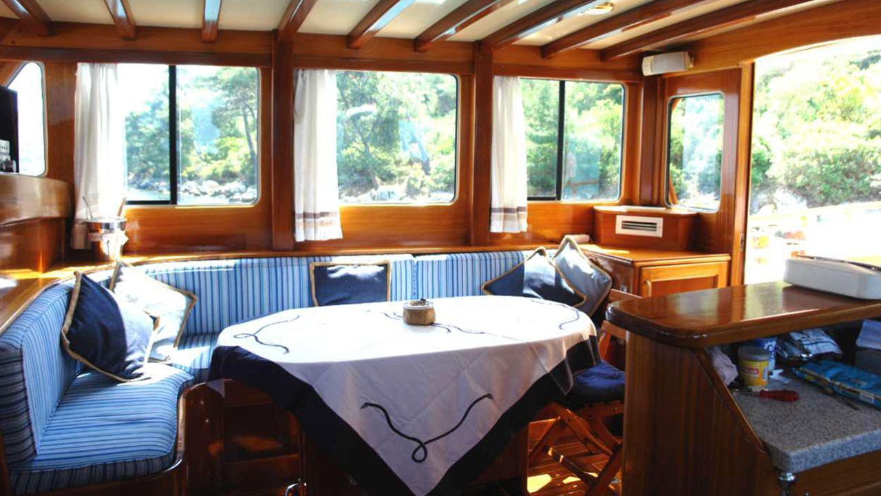 Гулет Miramare — утончённый традиционный гулет длиной 20 м. Построен в 2007 году, полностью обновлён в 2022-м; удачное сочетание элегантного стиля и современного комфорта. На борту четыре дабл-каюты с отдельными санузлами; до восьми гостей — отличный выбор для семей или компаний, ищущих частную чартер-яхту в Турции.