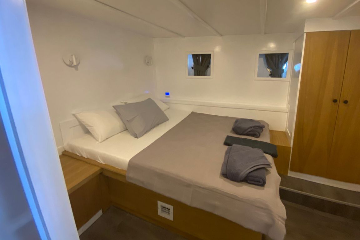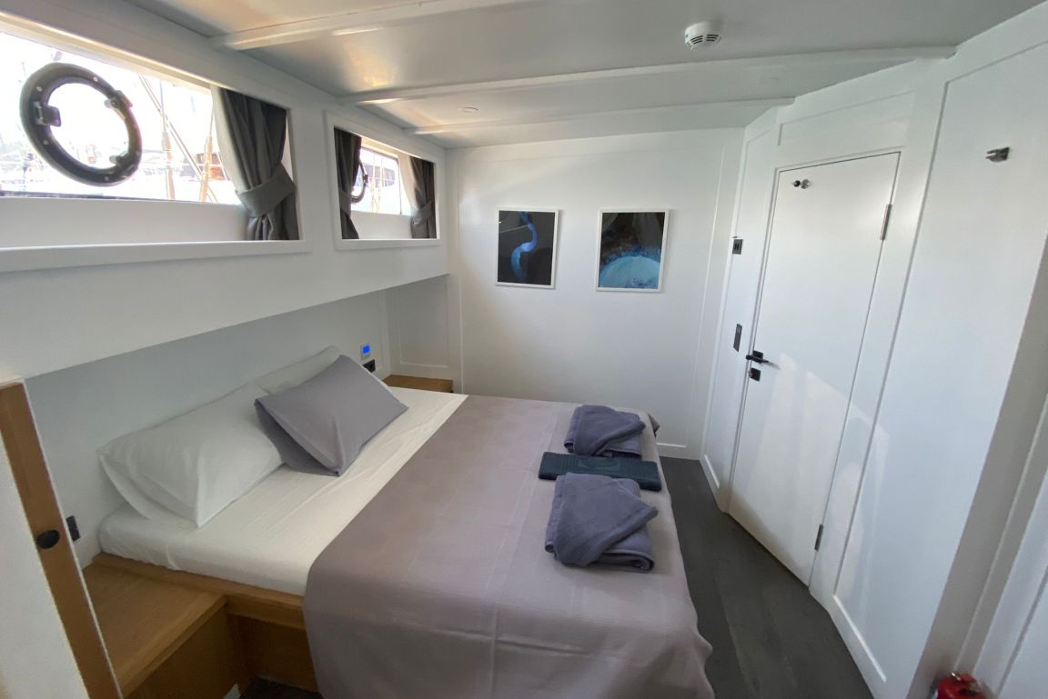 Вместимость до 10 гостей; 1 мастер-каюта, 4 двухместные каюты, кондиционер, шкаф для одежды, душевая кабина и туалеты домашнего типа во всех каютах, отдельные каюты для экипажа. |