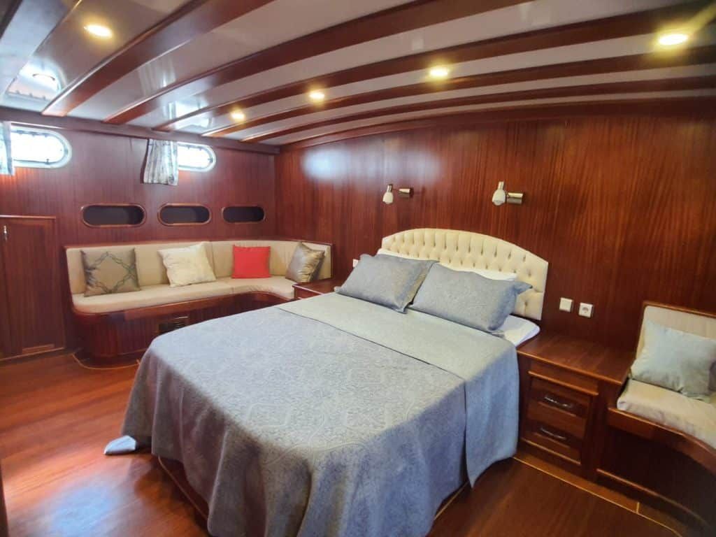 Cagan Гулет и яхта была выпущена в 2015 году. Он предлагает вам тур Blue Voyage длиной 30 метров. Есть 6 двухместных кают, каждая с собственным душем, туалетом и кондиционером. Вы можете спланировать приятный и развлекательный синий круизный отпуск на нашей лодке Cagan по любому из маршрутов Бодрум, Гёджек, Мармарис, Фетхие. Наша лодка Cagan имеет отдельные обеденные зоны на палубе и в гостиной, полностью оборудованную кухню, американский бар и отдельные жилые зоны для экипажа. На палубе есть зоны для загара, где 12 человек могут легко загорать.