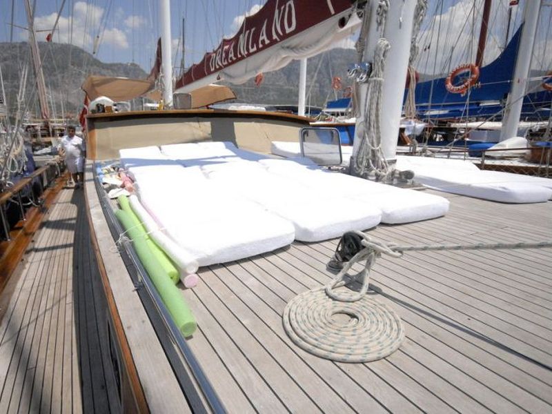Dreamland Гулет и яхта были построены в 2006. Он предлагает вам тур Blue Voyage длиной 32 метра. Есть 6 двухместных кают, каждая с собственным душем, туалетом и кондиционером. С нашей лодкой Dreamland вы можете спланировать приятный и развлекательный синий круизный отпуск по любому из маршрутов Бодрума, Гёджека, Мармариса и Фетхие. Наша лодка Dreamland имеет отдельные обеденные зоны на палубе и в гостиной, полностью оборудованную кухню, американский бар и отдельные жилые зоны для экипажа. На палубе есть зоны для загара, где могут легко загорать 12 человек.
