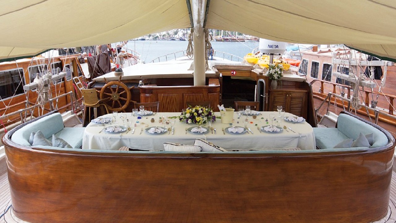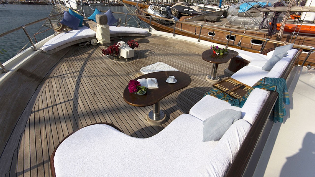| Гулет Serenad, длиной 29 м, построен в 2003 г., рефит 2013-го. Имеет 6 кают: мастер, 2 дабл, 1 тройная и 2 твин; вместимость — 12 гостей. Все каюты с личными удобствами. Палуба оборудована большой обеденной зоной, мягкими сиденьями и местами для загара. Внутри — уютный салон с обеденной зоной и камбузом. Водные развлечения: тузик 60 л.с., SUP-доски, каноэ, снасти для сноркелинга и рыбалки. Двигатель Iveco 450 л.с., генераторы 22 + 22,5 кВА, скорость 10 узлов. Кондиционер — 8 часов в день. Serenad — отличное решение для семей и групп, которые хотят совместить комфорт и активный отдых на побережье Турции. |