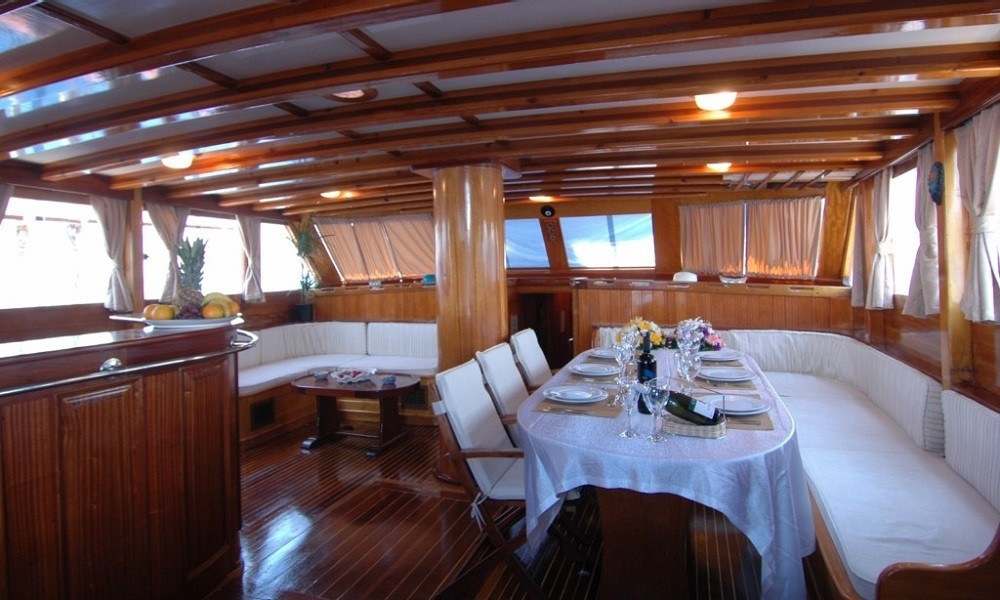 | Гулет Halil Aga 3 — это кеч длиной 30 метров, первоначально построенный в 1999 году и отреставрированный в 2016 году. На борту семь кают, включая три двухместные и четыре трёхместные, с максимальной вместимостью 18 гостей в турецких водах (12 за границей). Каждая каюта оснащена отдельной ванной комнатой и кондиционером, который работает с 6 утра до 8 вечера. Палуба оборудована удобными зонами для сидения, обеденной зоной под тентом и просторными местами для загара. Внутренний салон просторный, включает обеденную зону и бар. Для любителей водных видов спорта Halil Aga 3 предлагает широкий выбор оборудования: каноэ, виндсёрфинг, SUP-доски, подводные скутеры, дайвинг-оборудование, снаряжение для снорклинга и рыбалки. Судно оснащено двигателем Delphin мощностью 360 л.с. и генераторами на 20 + 27,5 кВт, что позволяет ему идти со скоростью 9 узлов. Halil Aga 3 — это профессиональный гулет, сочетающий простор, комфорт и разнообразие водных развлечений. |