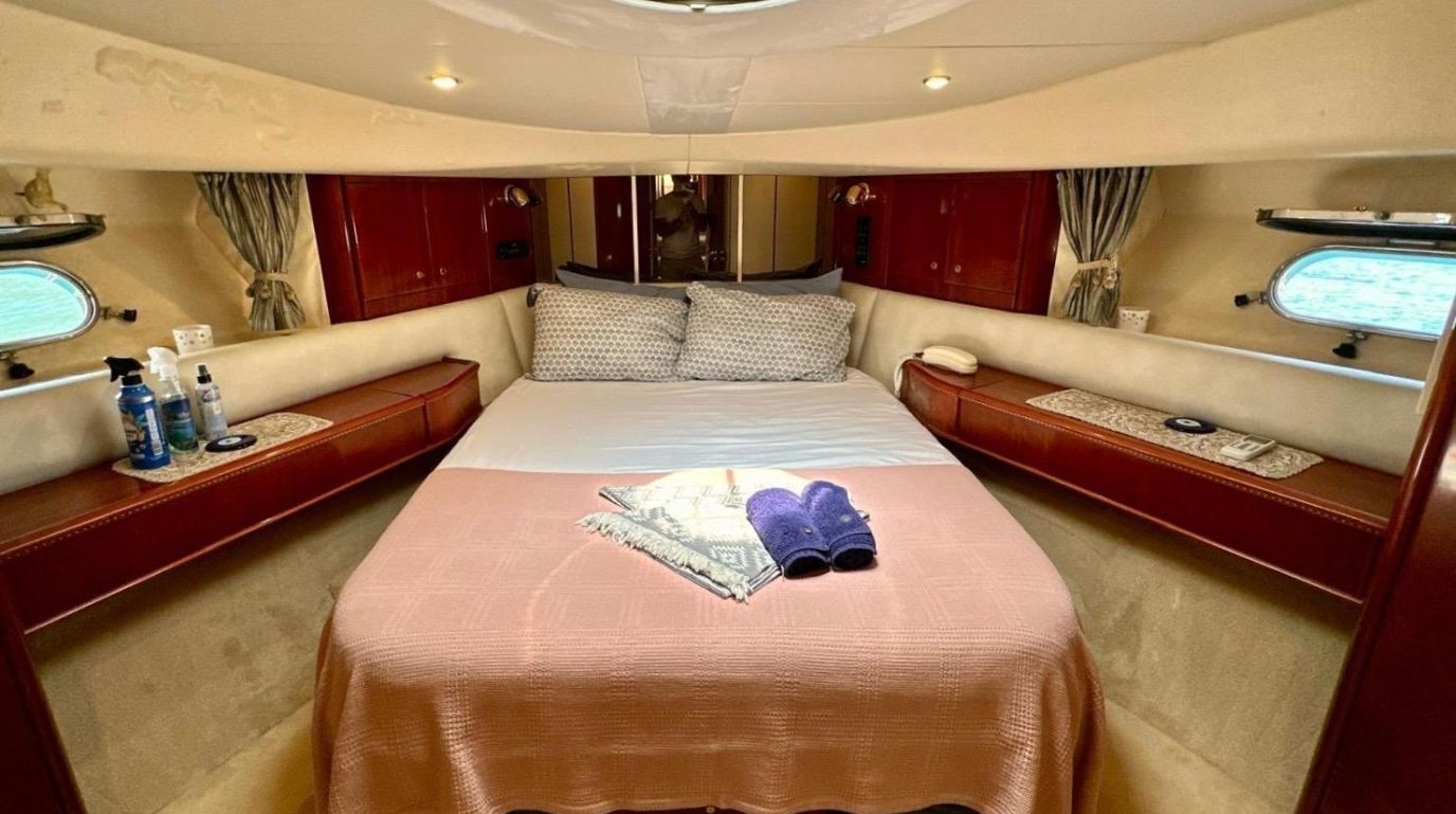 | До 4 гостей; 3 каюты. Все каюты оборудованы ванными комнатами, туалетами, кондиционерами. Отдельные каюты для экипажа. |