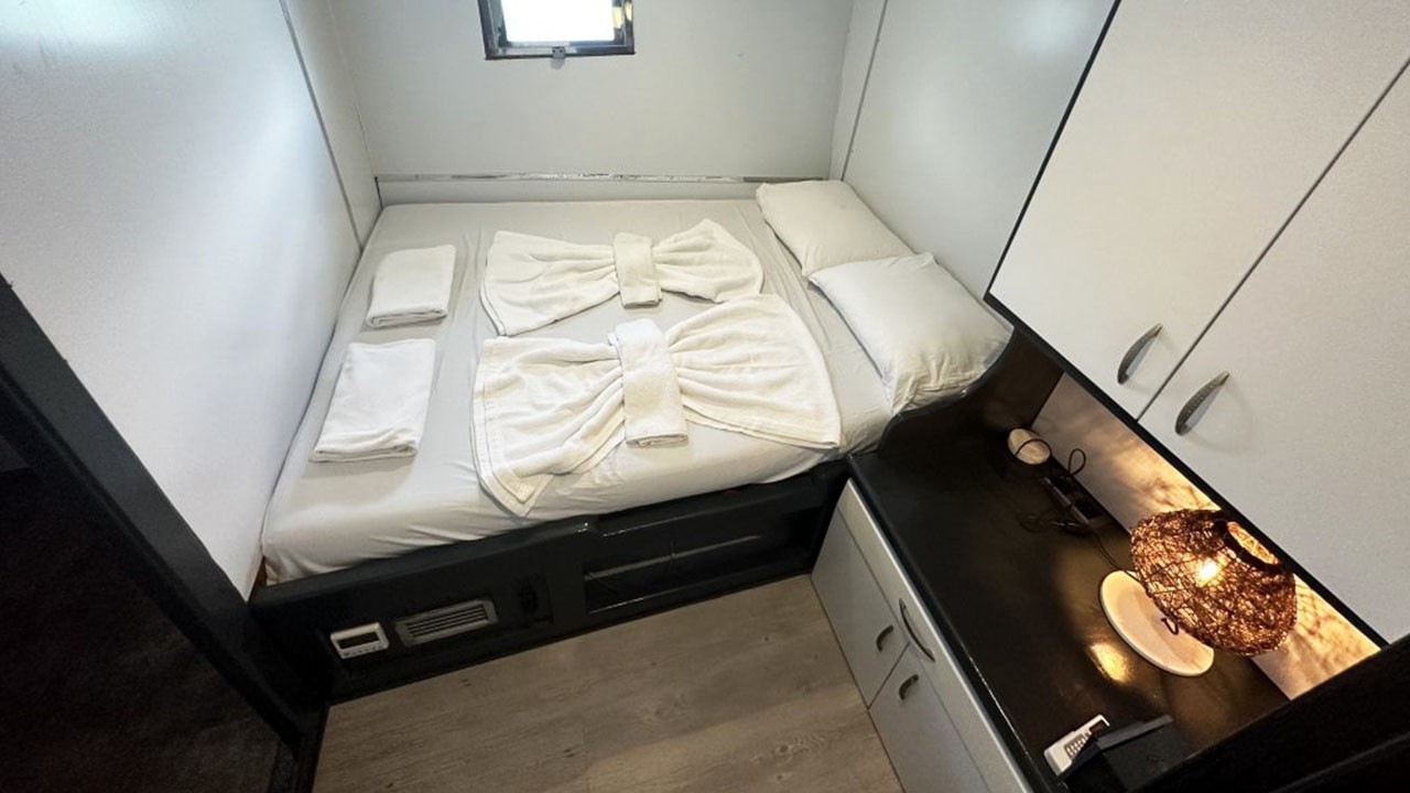 Техника: двигатель 360 л.с., генератор 35 кВА, сети 12/24/220 В; крейсерская ~8 узлов. Кондиционирование доступно ежедневно в комфортном режиме.