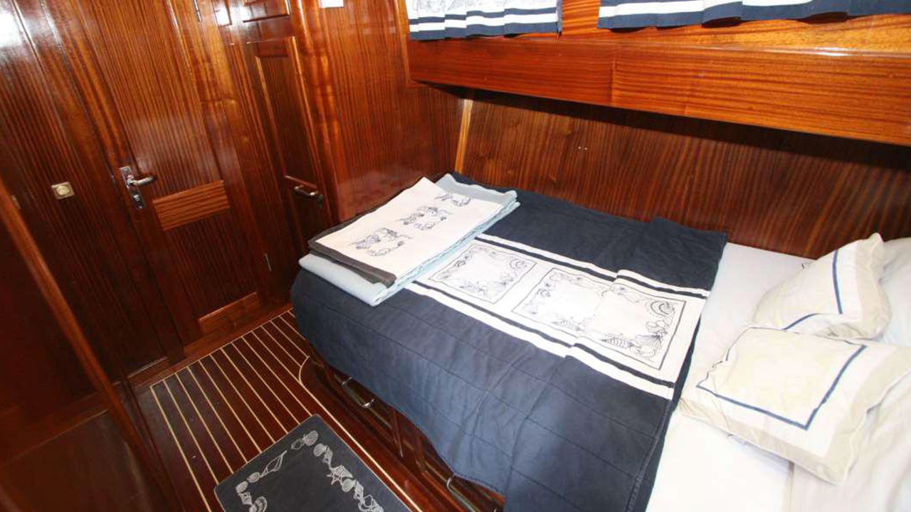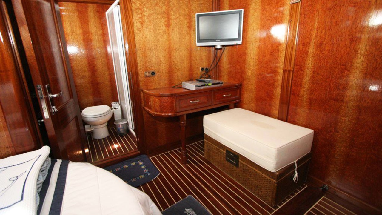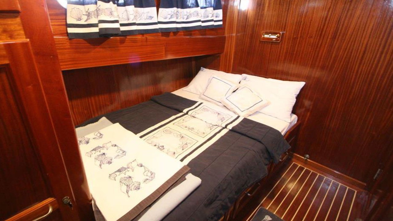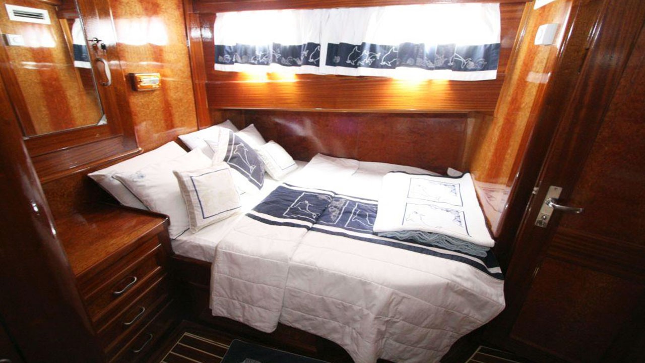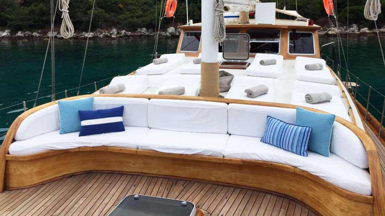 Гулет Miramare — утончённый традиционный гулет длиной 20 м. Построен в 2007 году, полностью обновлён в 2022-м; удачное сочетание элегантного стиля и современного комфорта. На борту четыре дабл-каюты с отдельными санузлами; до восьми гостей — отличный выбор для семей или компаний, ищущих частную чартер-яхту в Турции.