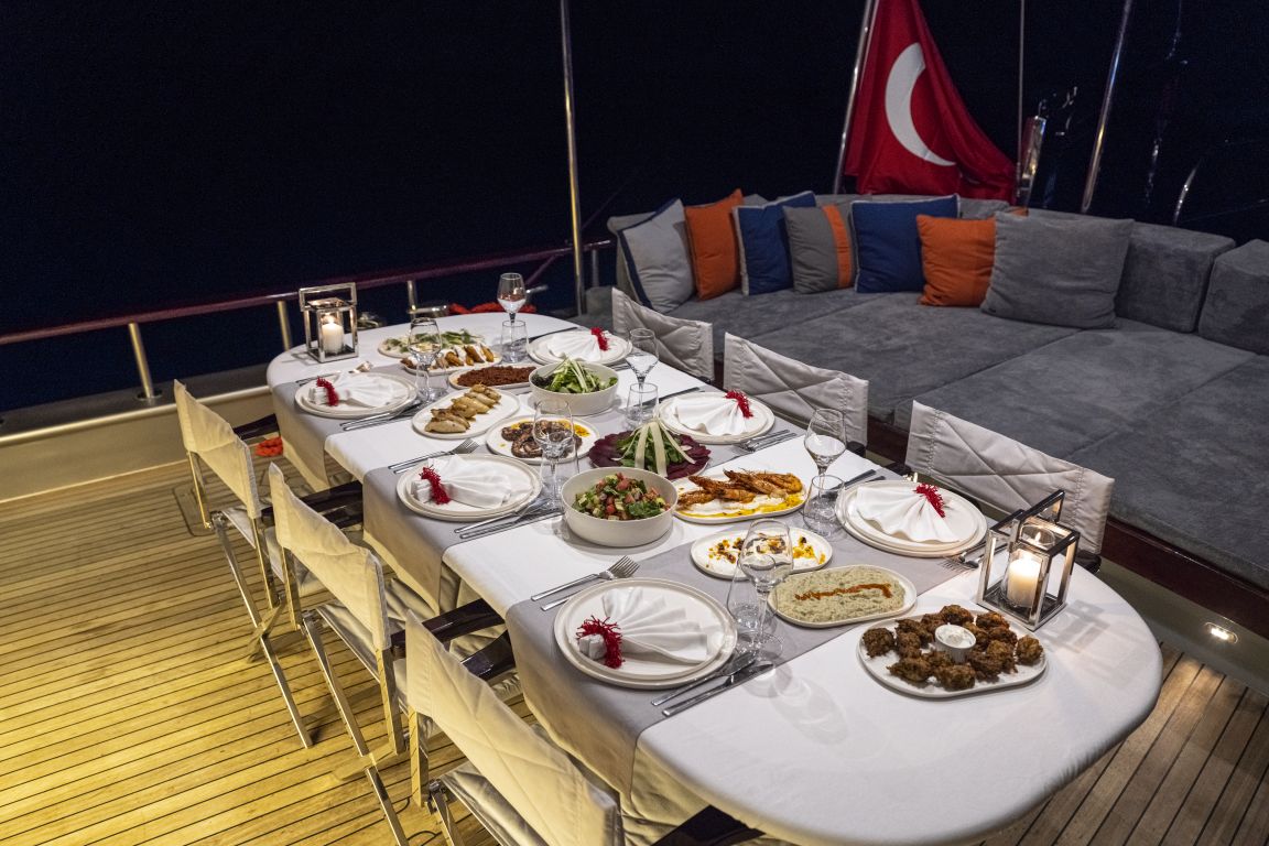 и сервировочных наборов. Эта яхта, предлагающая комфорт, роскошь и спокойствие для наших гостей круизов, может развивать скорость до 10 морских миль. Благодаря полностью оборудованной беспроводной связи, GSM-телефонии и навигационным системам вы будете чувствовать себя в безопасности во время круиза на яхте Lotus по самым популярным направлениям голубого круиза, таким как Бодрум, Мармарис, Фетхие и Гёчек. Кроме того, в салоне для удобства наших уважаемых гостей голубого круиза имеется ЖК-телевизор, DVD-плеер и музыкальная система. Чтобы вы не отключались от интернета во время своего отдыха, наша яхта оборудована Wi-Fi, действующим в пределах турецких территориальных вод. Для гостей, желающих, доступны такие водные виды спорта, как вейкбординг, водные лыжи, каноэ и Hobie Mirage. Для наших гостей, желающих насладиться голубым путешествием по нетронутым бухтам Турции, наш морской матрас также предлагает дополнительные возможности для развлечений. |