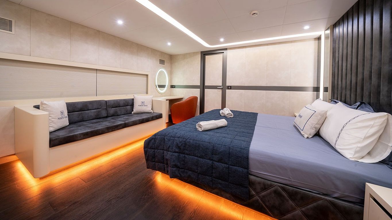 | North Wind — роскошная парусная яхта длиной 47 м, спущенная в 2023 году; современный и элегантный круизный опыт. Пять кают — одна мастер, три дабл и одна твин — максимум 10 гостей. Ширина 9,50 м добавляет простора и величия как внутри, так и снаружи. Обширная палуба предлагает разнообразные лаунжи и солярии, теневые обеденные зоны и изящный экстерьер. Внутри — современный стильный салон с обеденной зоной, комфортным лаунжем и полностью оборудованным камбузом. Для активностей на воде: тузик Mercury 115 л.с., гидроцикл, seabob, надувной каяк, SUP-доска, водные лыжи, вейкборд, ринго, каноэ, снаряжение для сноркелинга и рыбалки. Силовая установка: два двигателя MAN по 850 л.с., генераторы 50 + 22 кВА; крейсерская 10 узлов. Полноценная система кондиционирования для постоянного комфорта; электросети 12V/24V/220V. North Wind — оптимальный выбор для гостей, ищущих абсолютно новую парусную яхту с люксовыми удобствами, выдающимся набором водных «игрушек» и идеальным «голубым круизом». |
