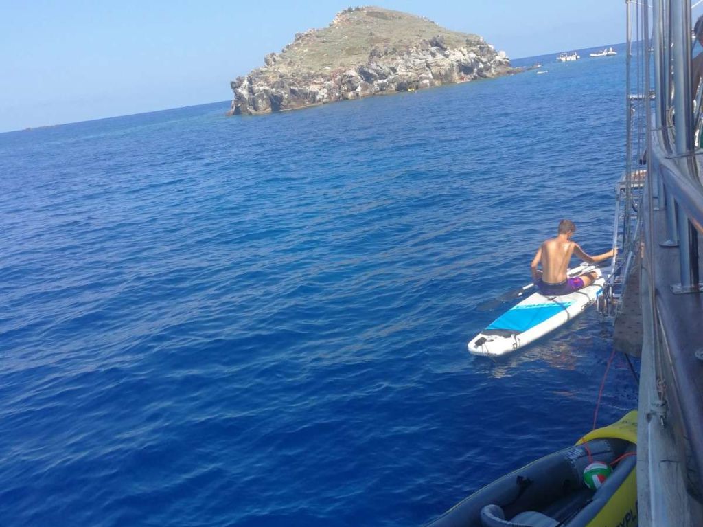 4,50 м, подвесной двигатель 70 л.с., доска для гребли, платформа для купания, оборудование для сноркелинга и рыбалки, оборудованный камбуз, крытая столовая, спасательное оборудование, навигационное оборудование, матрасы для загара, кофемашины, палуба с обеденной зоной, TV/DVD/CD-плеер, GPS, радио VHF, Wi-Fi Интернет |