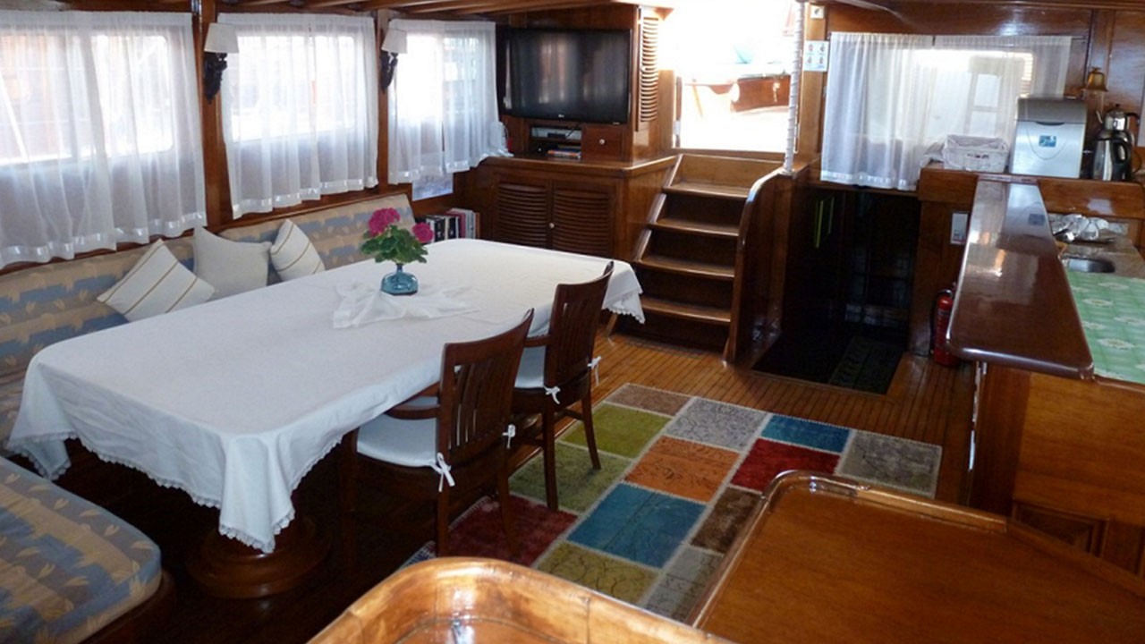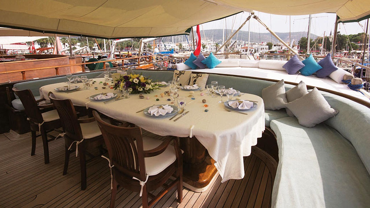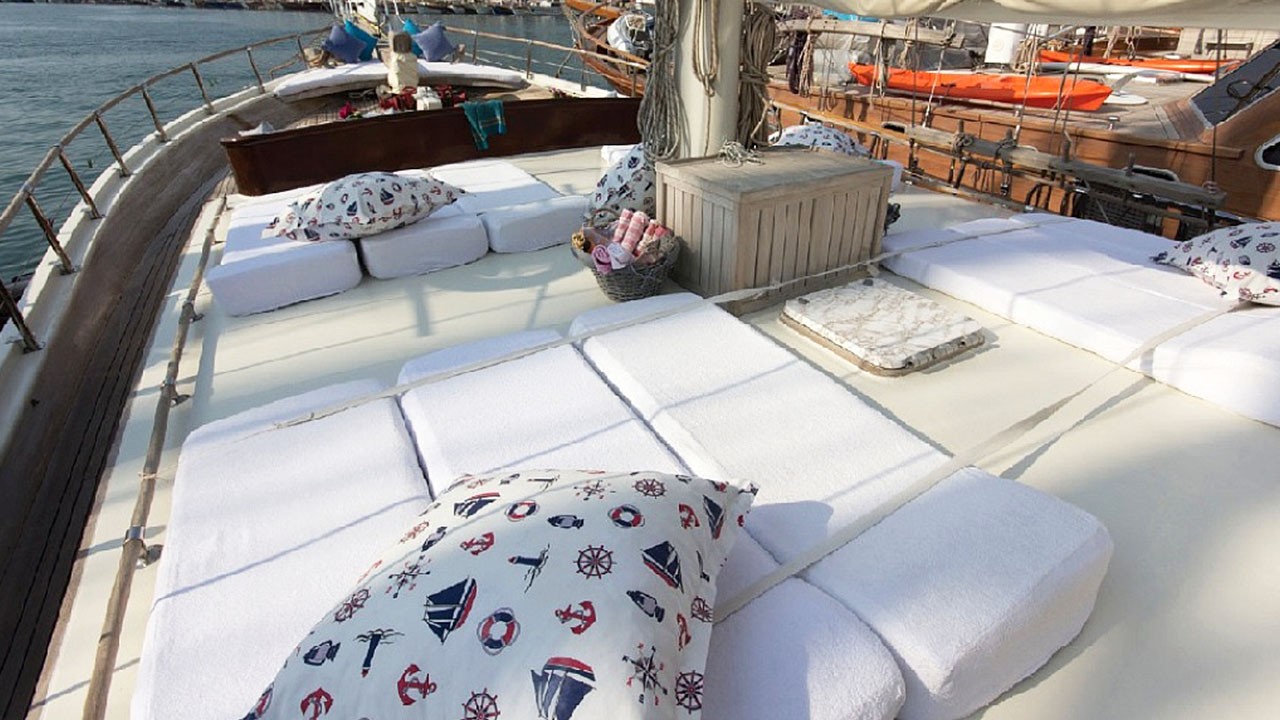 | Гулет Serenad, длиной 29 м, построен в 2003 г., рефит 2013-го. Имеет 6 кают: мастер, 2 дабл, 1 тройная и 2 твин; вместимость — 12 гостей. Все каюты с личными удобствами. Палуба оборудована большой обеденной зоной, мягкими сиденьями и местами для загара. Внутри — уютный салон с обеденной зоной и камбузом. Водные развлечения: тузик 60 л.с., SUP-доски, каноэ, снасти для сноркелинга и рыбалки. Двигатель Iveco 450 л.с., генераторы 22 + 22,5 кВА, скорость 10 узлов. Кондиционер — 8 часов в день. Serenad — отличное решение для семей и групп, которые хотят совместить комфорт и активный отдых на побережье Турции. |