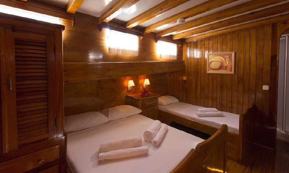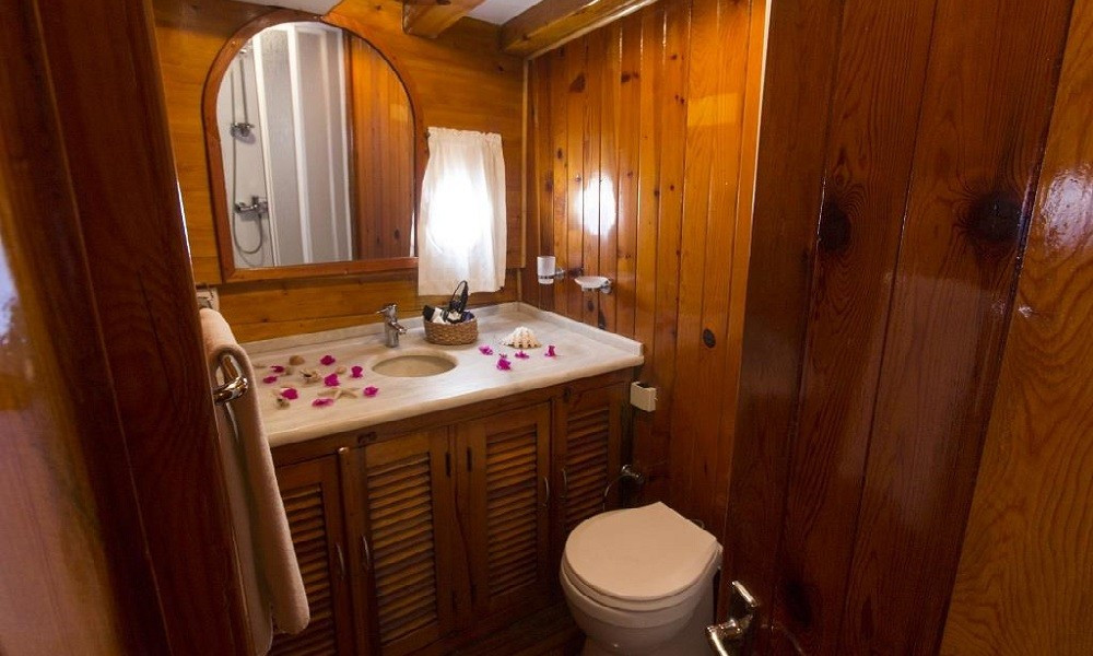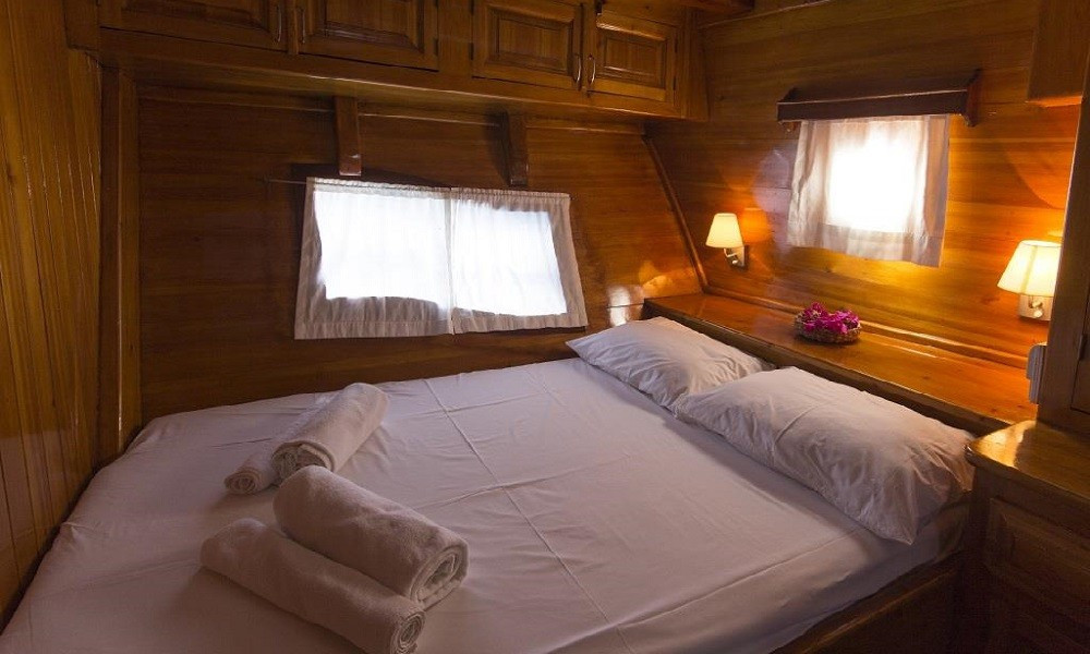 | Гулет Halil Aga 3 — это кеч длиной 30 метров, первоначально построенный в 1999 году и отреставрированный в 2016 году. На борту семь кают, включая три двухместные и четыре трёхместные, с максимальной вместимостью 18 гостей в турецких водах (12 за границей). Каждая каюта оснащена отдельной ванной комнатой и кондиционером, который работает с 6 утра до 8 вечера. Палуба оборудована удобными зонами для сидения, обеденной зоной под тентом и просторными местами для загара. Внутренний салон просторный, включает обеденную зону и бар. Для любителей водных видов спорта Halil Aga 3 предлагает широкий выбор оборудования: каноэ, виндсёрфинг, SUP-доски, подводные скутеры, дайвинг-оборудование, снаряжение для снорклинга и рыбалки. Судно оснащено двигателем Delphin мощностью 360 л.с. и генераторами на 20 + 27,5 кВт, что позволяет ему идти со скоростью 9 узлов. Halil Aga 3 — это профессиональный гулет, сочетающий простор, комфорт и разнообразие водных развлечений. |