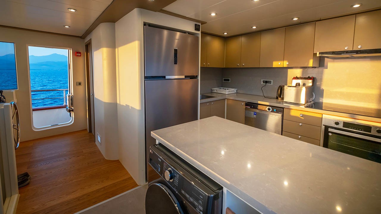 | Полное навигационное оборудование: радар, GPS, эхолот, Navtex, автопилот, УКВ-радиостанция, GSM-телефон, опреснитель воды. Для отдыха: водные лыжи, виндсёрфинг, каноэ, надувные круги, вейкборд, сапборд, снаряжение для сноркелинга и рыбалки, ЖК-телевизор, Wi-Fi интернет. |